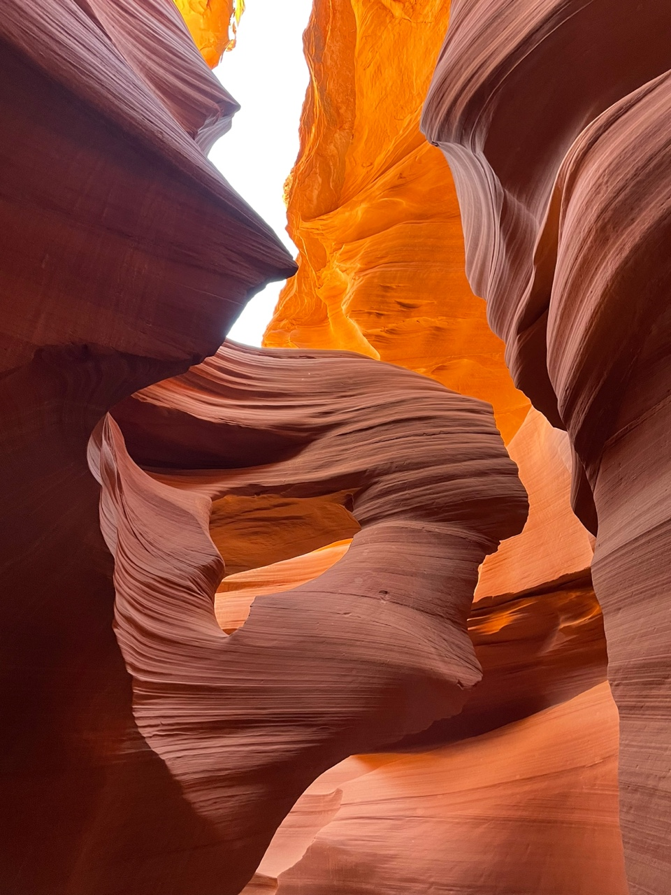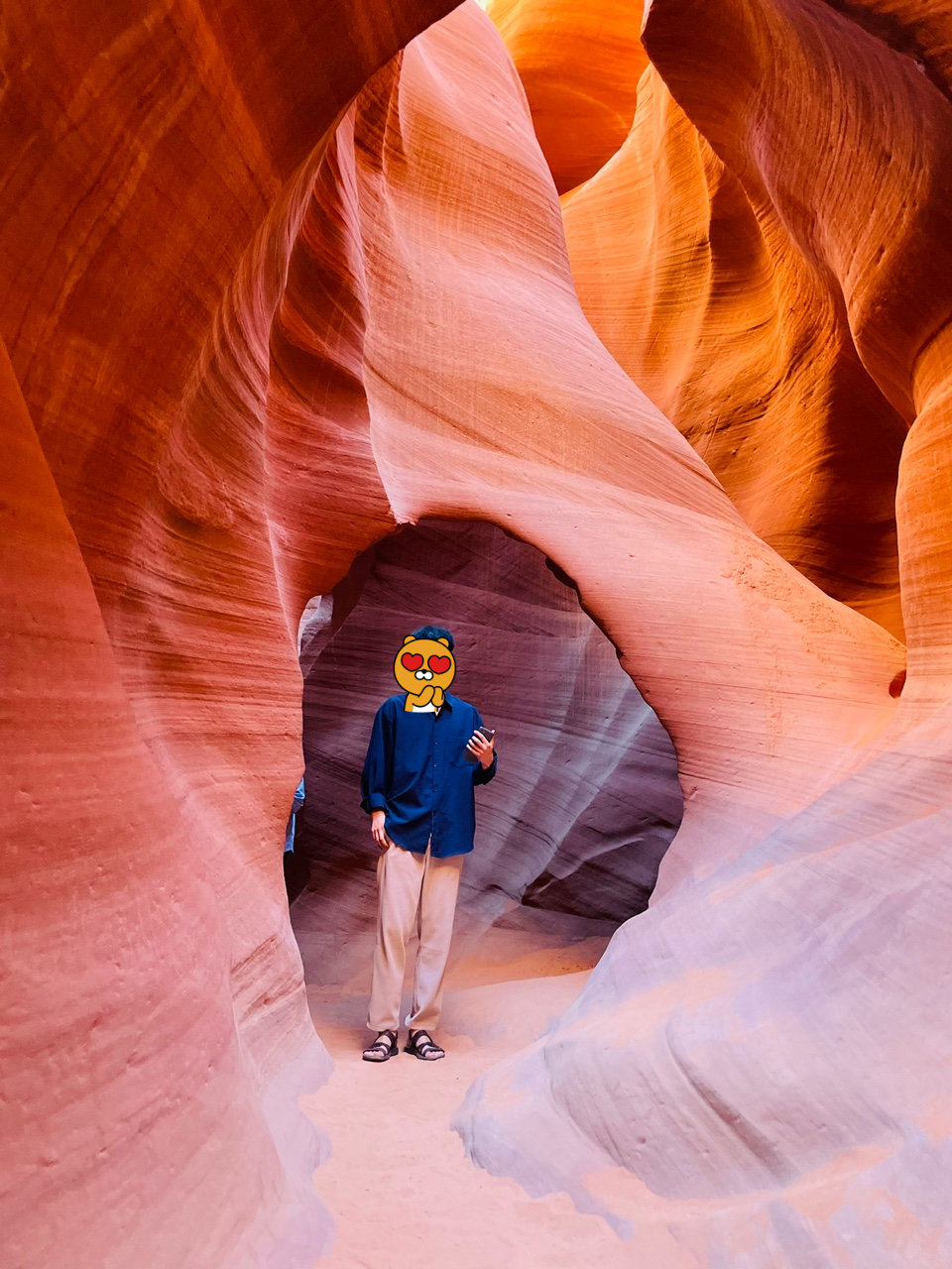 그래서 우리는 Lower Antelope Canyon을 선택했다. Lower Antelope Canyon도 덜 유명한 윈도우 배경사진을 찍은 장소가 있었고 햇빛이 들어와야 색감이 쨍하게 잘 보이기 때문이었다. 지형도 비슷비슷하는 평이 많았다. 우리는 11시 예약으로 원주민 가이드를 만났다. 자동차 회사 shut down 기간이라 그런지 여행 온 한국인이 정말 많았다. 참고로 인당 물 한 병씩 꼭! 들고 가는 것을 추천한다. 물을 별로 안 먹는 사람도 사막이라 목이 건조해서 반드시! 필요하다.