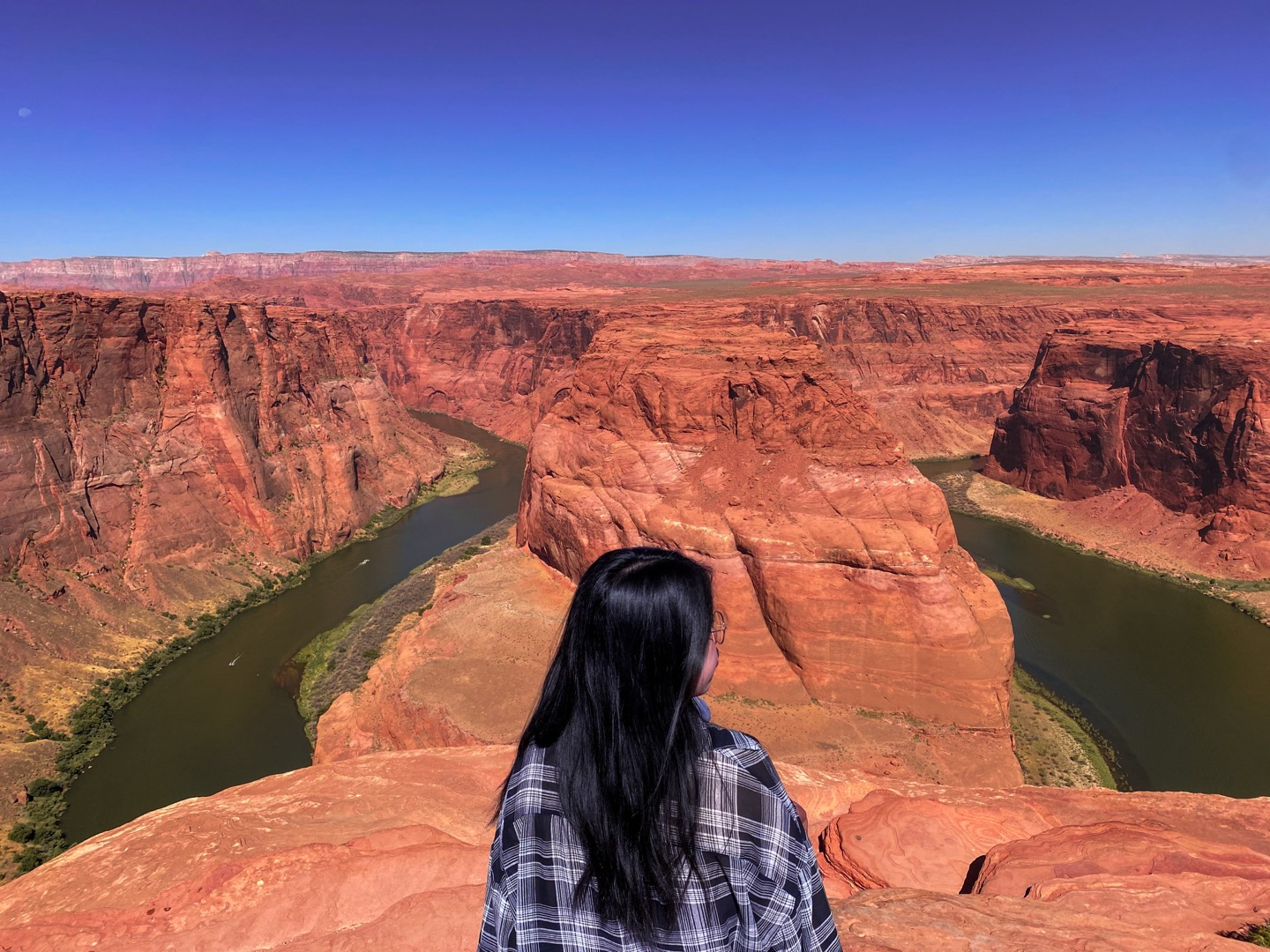 한국 국토 모양으로 유명한 홀스슈밴드가 15분 거리에 있어서 먼저 들리기로 했다. 정말 정말 태어나서 처음 보는 크기의 협곡이 눈앞에 펼쳐졌다. 너무 거대해서 감도 안 잡히는 크기의 홀슈스가 앞에 있었다. 특이한 점은 바람이 많이 부는데 안전장치가 없다는 점이었다. 위험한 곳이어서 어린아이들은 바람에 밀려 떨어질 수도 있겠다고 생각했다. 나는 자연에 취해 정신없이 사진을 찍고 뒤돌아보니, 더운 열기에 지친 여자들이 차에 미리 가서 쉬겠다고 가버렸다. 홀스슈 안쪽까지 걸어서 들어가는 길이 길고 더워서 지칠만 했다고 생각했다.